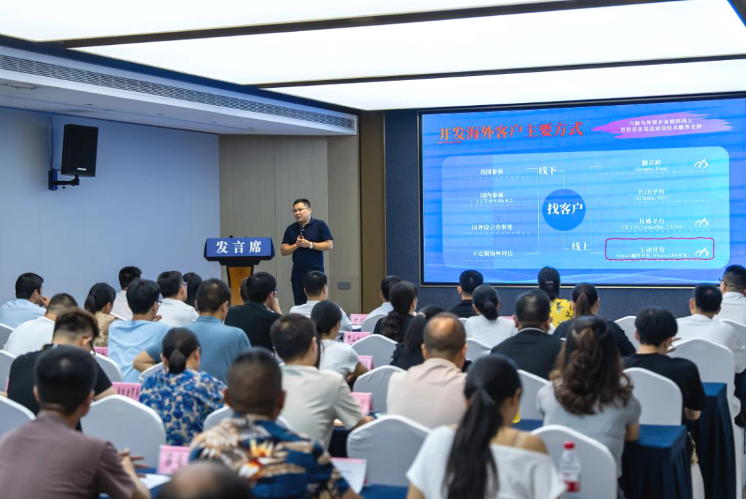 湖北六脉网络技术有限公司总经理詹志飞围绕“外贸营销渠道建设”展开讲解,从客户开发、搜索引擎优化到社交媒体营销等实操层面,为企业拆解科学的跨境营销流程,助力企业精准触达国际客户;北京中银(武汉)律师事务所徐梦玲则聚焦“国际贸易风险把控”,结合典型案例,详细解读国际法律法规应用、合同签署要点、国际结算安全及争端解决策略,帮助企业筑牢风险防控“防火墙”。